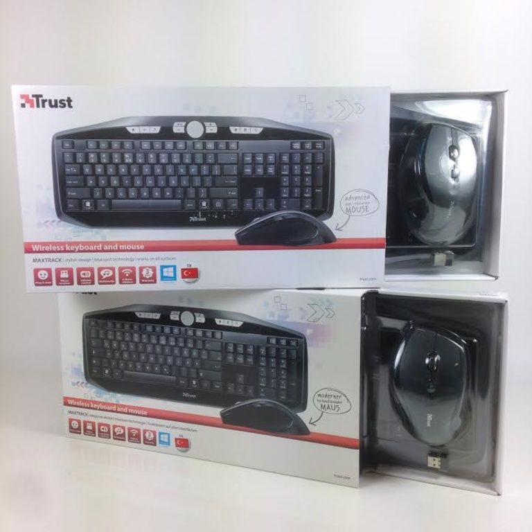 Стильная и удобная беспроводная мультимедийная клавиатура и беспроводная мышь с компактным приемником USB.
