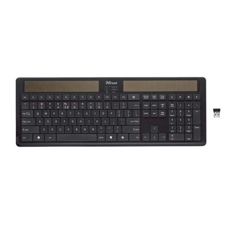 Беспроводная клавиатура с солнечными элементами; Зарядка производится под воздействием солнечного света или дневного света, так что батареи не требуется.